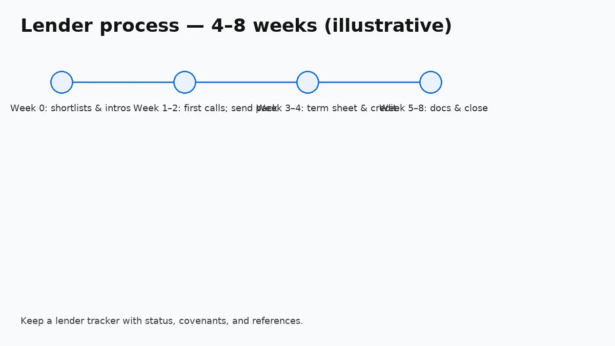If your board update can show runway with and without debt, a servicing plan under downside, and a covenant summary on one page—you’re ready to engage lenders.